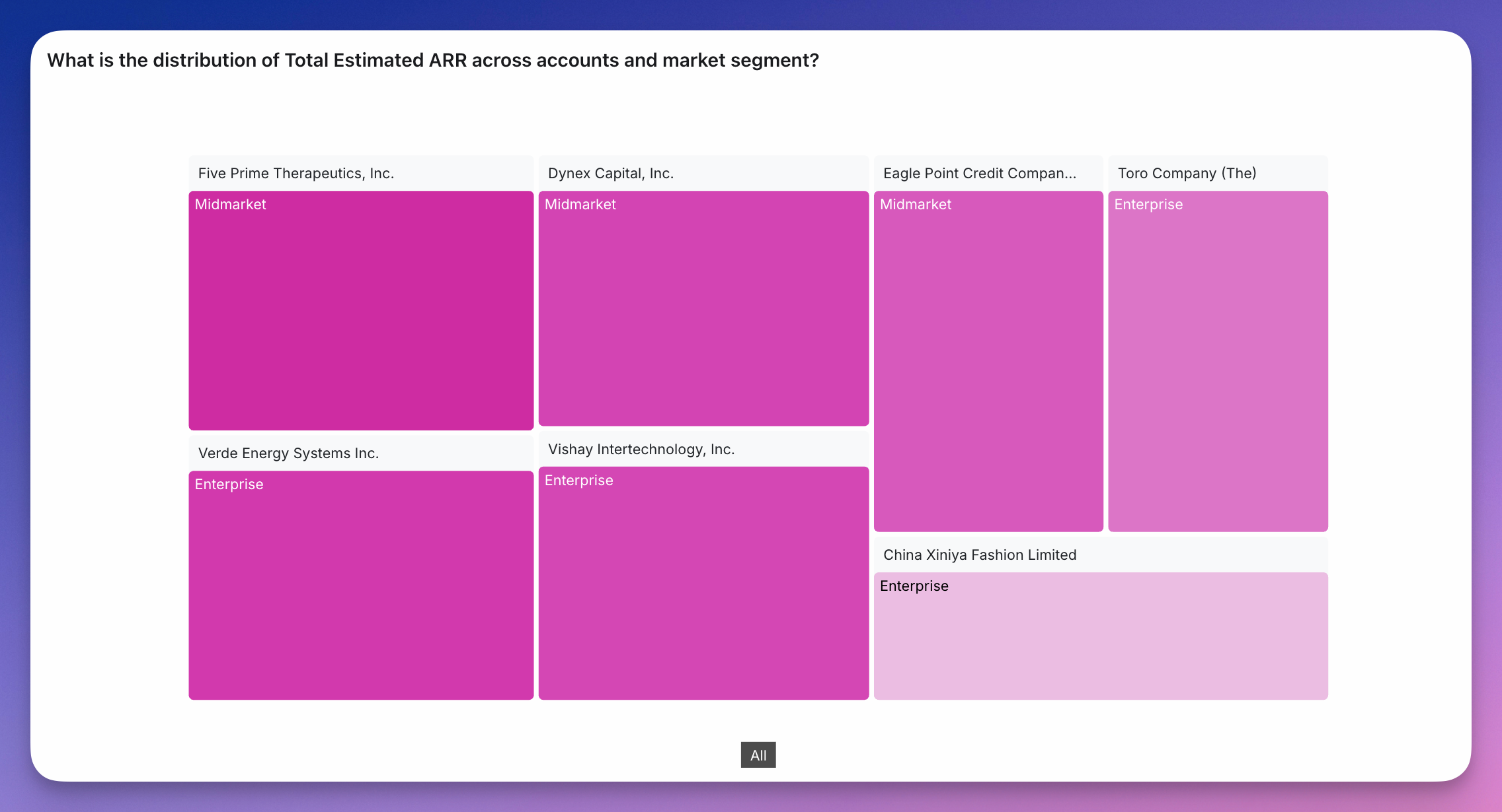 - Color metric allows you to set a color scale for Highlighting each section of the treemap.