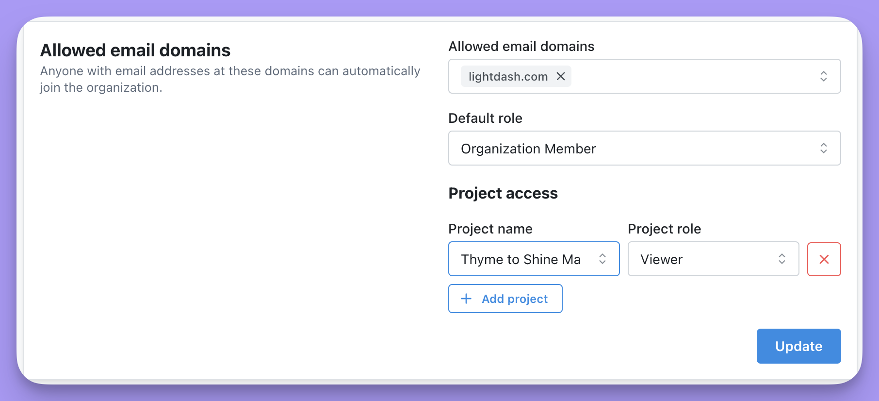 Once you’ve selected the default roles for your allowed email domains, make sure to click Update to save your changes.